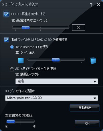 視聴を終えたら、必要に応じて「1.」〜「2.」の手順で再度「3Dディスプレイの設定」ウィンドウを表示し、設定を戻してください。