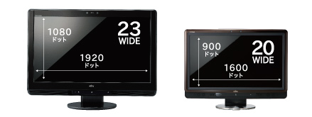 23型ワイド液晶と20型ワイド液晶をラインナップ。テレビや3Dなど、お好みの機能をお好みの画面サイズから選べます。