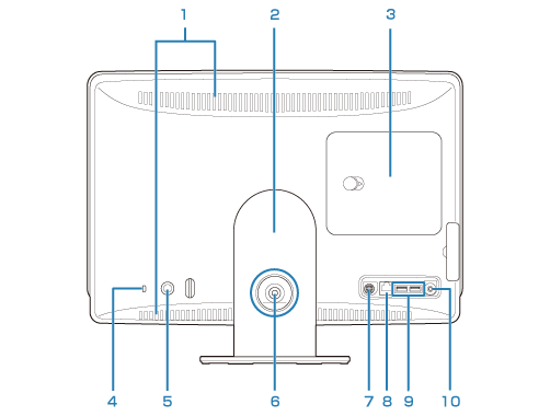 1 通風孔 パソコン本体内部と外部の空気を交換して熱を逃がすための開孔部です。