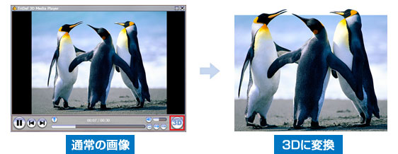 市販されている2DのDVDコンテンツをリアルタイムに3D映像に変換して楽しめます。
