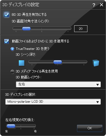 - 「3D ディスプレイの選択」は「Micro-polarizer LCD 3D」を選択します。