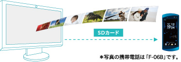 FMVのテレビPCで録画した番組を、SDカードにムーブ・ダビングして携帯電話で視聴することができます。家で録画番組をじっくり見る時間がなくても、携帯電話で持ち出せば好きな時間に好きな場所で楽しめます。
