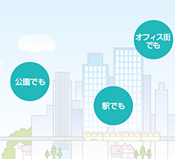 受信最大20Mbps、送信最大6Mbpsの高速モバイル通信を実現(注1)。駅やオフィス街など広いエリアでワイヤレス通信が可能です(注2)。
