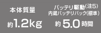大容量バッテリ(別売オプション)で駆動時間約10.0時間(注5)を実現