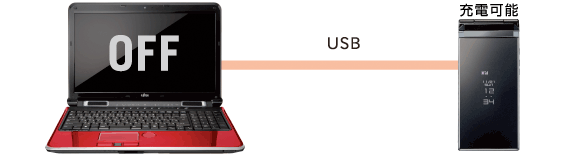 パソコンの電源がオフの時でも、携帯電話やデジタルオーディオプレーヤーなどのUSB充電に対応している機器の充電をすることができます。