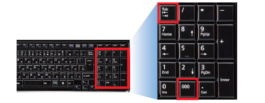 またAHシリーズ(注3)は「0」キーの隣に「000」キー、左上端に「Tab」キーも搭載しているので、表計算など数字入力が多い作業もらくらくできます。