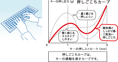 最適な押しごこちを実現するために、最適なキーストロークを追求しました。