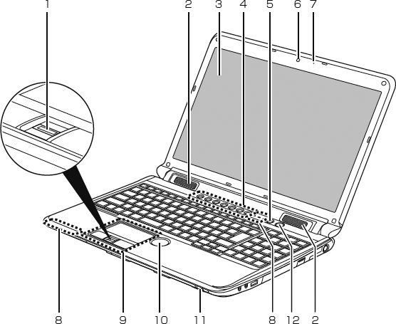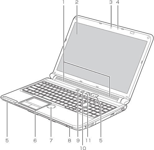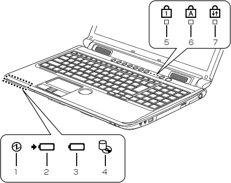 | 注1 | : | ご購入時は、AC アダプタが接続されている状態で、かつログインしているときに、周囲が点灯するように設定されています。設定を変更する場合は、「スタート」→ 「すべてのプログラム」→「省電力ユーティリティ」→「ランプオフ設定 - 省電力ユーティリティ」の順にクリックし、設定を変更してください。 |