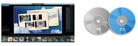 写真と動画を組み合わせて、オリジナルのビデオディスクを作れます。夏休みに行った旅行の写真と動画を1枚のディスクに保存して、プレゼントすることもできます。