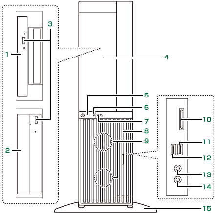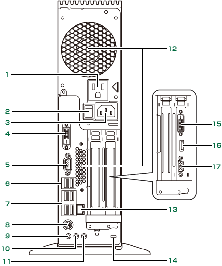 | 注1 | : | AMD Radeon™ HD 6570 非搭載機種のみお使いになれます。 AMD Radeon™ HD 6570 搭載機種では、このコネクタにカバーが付いています。 |