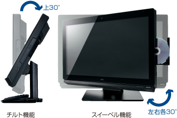 上・左右に無段階で動かせ、角度調整やメディアの出し入れなどがかんたんにできます。さらに、液晶下部にキーボード収納も可能です。