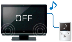 PCの電源がオフのときでも、PCとデジタルオーディオプレーヤーを別売のケーブルで接続するだけで、音楽を楽しむことができます(注2)。また、電源オフUSB充電機能で、音楽を楽しみながら、デジタルオーディオプレーヤーなどの充電が可能です。