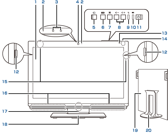 11. 電源ボタン()、電源ランプ