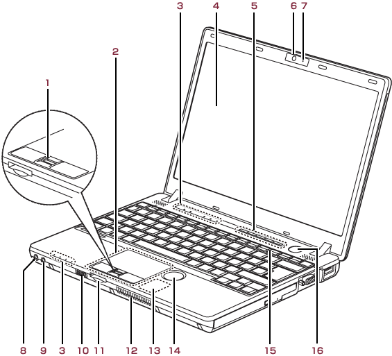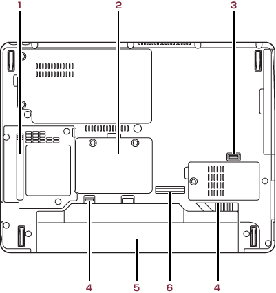 1. 内蔵無線LAN アンテナ、内蔵モバイルWiMAX アンテナ