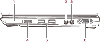 5. USB2.0 コネクタ(電源オフUSB 充電機能対応)(