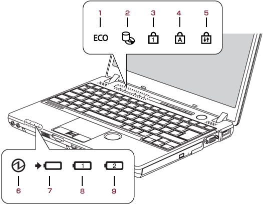 9. 増設用内蔵バッテリユニット残量ランプ(