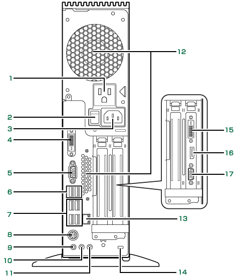 | 注1 | : | AMD Radeon HD 6570 非搭載機種のみお使いになれます。 AMD Radeon HD 6570 搭載機種では、このコネクタにカバーが付いています。 |