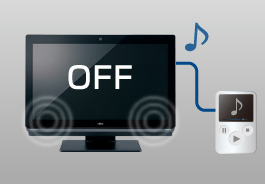 PCの電源がオフのときでも、PCとデジタルオーディオプレーヤーを別売のケーブルで接続するだけで、音楽を楽しむことができます(注4) 。また、電オフUSB充電機能で、音楽を楽しみながら、デジタルオーディオプレーヤーなどの充電が可能です。