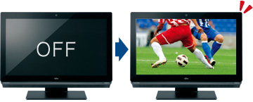 リモコンのテレビ電源ボタンや本体のテレビボタンを押すだけで、パッと1.5秒(実測値)で地デジ番組の視聴ができます。また、PCでのテレビ視聴へもスムーズに移行できます。