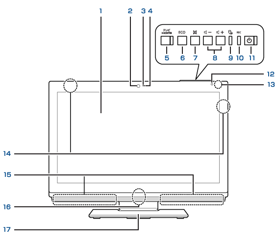 5. クイックテレビ/外部入力ボタン、クイックテレビ/外部入力ランプ[注1]