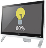 | パソコン本体の電源をONにすると、同時にディスプレイの電源もONになる電源連動式サービスコンセントを採用。本体電源OFF時と本体省電力時にディスプレイへの電源供給がストップし、節電に貢献できます。 | ![]() |