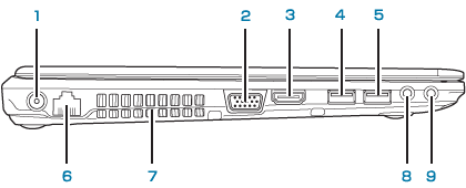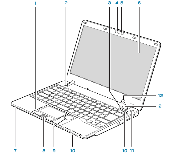 1. 内蔵無線LAN アンテナ、内蔵モバイルWiMAXアンテナ