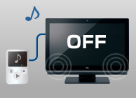 PCの電源がオフのときでも、PCとデジタルオーディオプレーヤーを別売のケーブルで接続するだけで、音楽を楽しむことができます(注10)。また、電源オフUSB充電機能で、音楽を楽しみながら、デジタルオーディオプレーヤーなどの充電も可能です。
