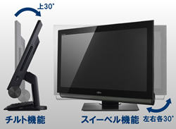 上30°、左右各30°まで無段階に動かせ、角度調整やメディアの出し入れなどがかんたんにできます。