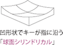 キートップをわずかに凹形状にすることにより、キーが自然に指に沿い、疲れにくいタイピングを実現します。