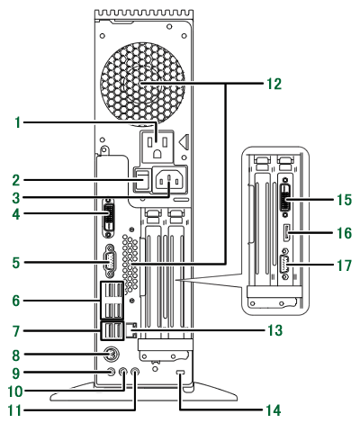 | 注1 | : | AMD Radeon HD 7570 非搭載機種のみお使いになれます。 AMD Radeon HD 7570 搭載機種では、このコネクタにカバーが付いています。 |