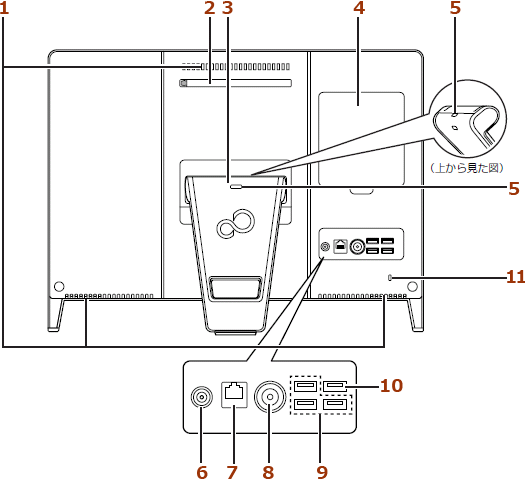 | 4. | USB2.0コネクタ(電源オフUSB充電機能対応)( |