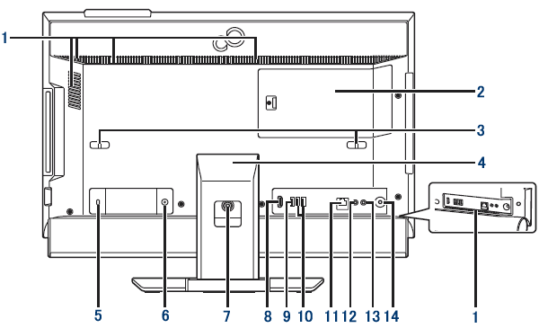 | 13. | 盗難防止用ロック取り付け穴( |