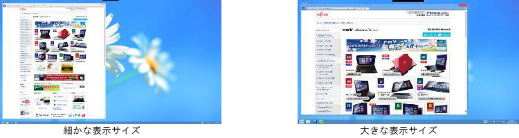 「Webサイトを見ながら文書作成」といったマルチタスクの作業は情報量が多くできる細かな表示サイズで、