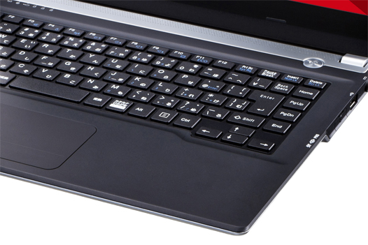マグネシウム合金では出せない「金属の質感」にこだわり抜いたアルミの操作面は、パソコン操作に没頭できるよう、それぞれのパーツをシンプルで使いやすいようレイアウト。