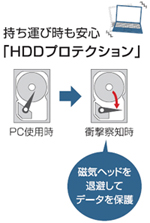 HDDに比べ耐衝撃性に優れたSSDを搭載しています。