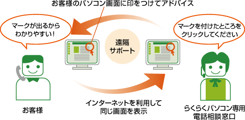 サポート担当者がインターネットを経由してお客様の画面を参照し、電話で操作案内をするサービスです。