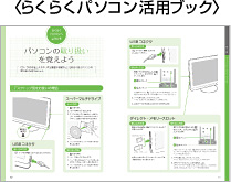 大きな文字で、難しい解説を極力省いた専用マニュアル付き。らくらくパソコンの使い方を楽しく学べます。