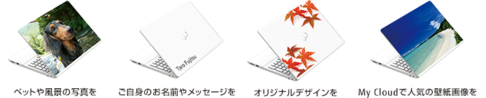購入するノートPCの天板に、お好きな画像/文字やWEB MARTオリジナルデザインをプリントするサービスです。