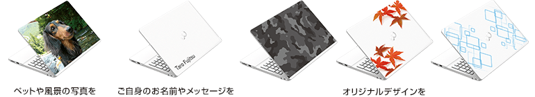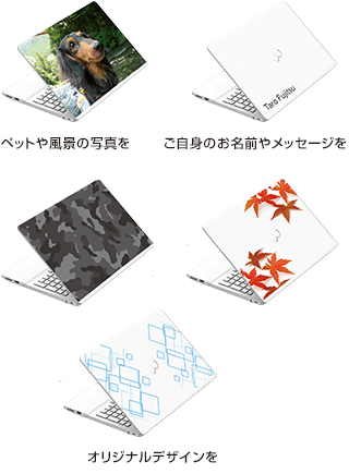 購入するノートPCの天板に、お好きな画像/文字やWEB MARTオリジナルデザインをプリントするサービスです。