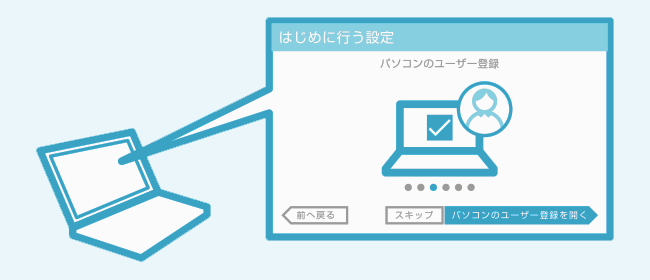パソコンの使いはじめに必要な設定が、かんたんにできる便利なソフト。最初に必要になるユーザーID(My Cloud アカウント、メールアドレス)の登録やOfficeの初期設定についてご案内します。