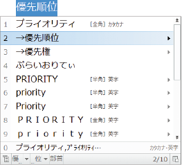 「ぷらいおりてぃ」と入力し、スペースキーで英単語に変換。「F4」キーでもOK。