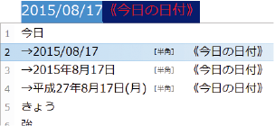 「きょう」と入力すると、今日の日付を曜日付きで変換。