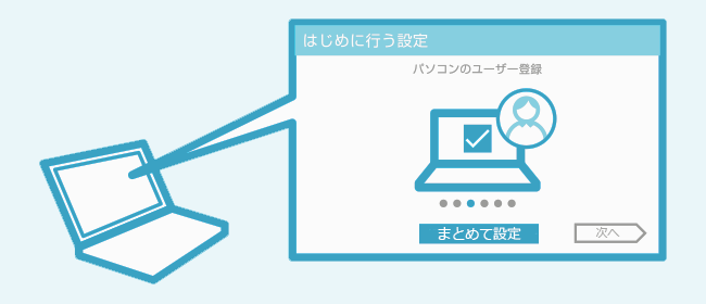 パソコンの使いはじめに必要な設定が、まとめてかんたんにできる便利なアプリ。最初に必要になるユーザーID(My Cloud アカウント、メールアドレス)の登録や便利なショートカットの追加についてご案内します。