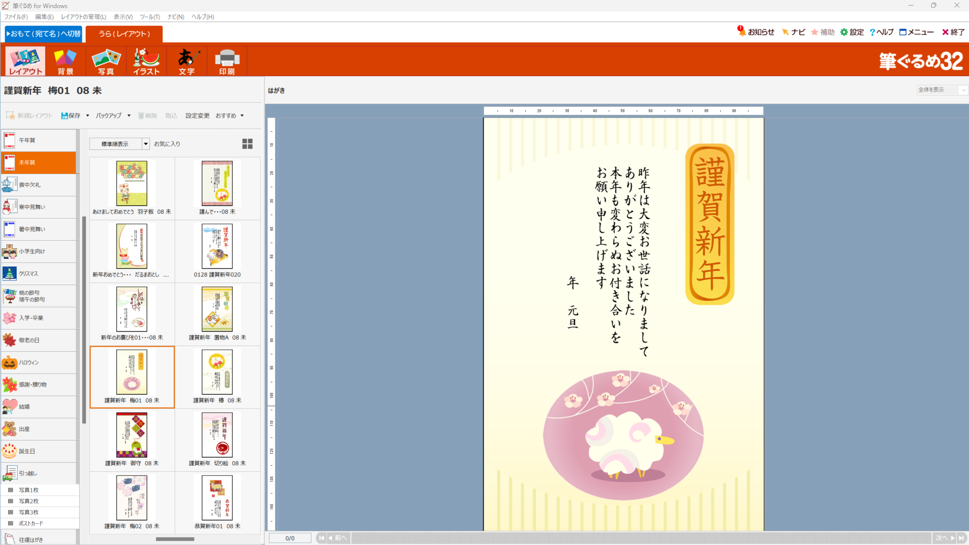 自分で編集・加工したお気に入りの写真を入れて、オリジナルデザインの年賀状が作れます。選べるレイアウトパターンや素材も豊富。年賀状などに欠かせない住所録の管理や宛名書きにも対応します。