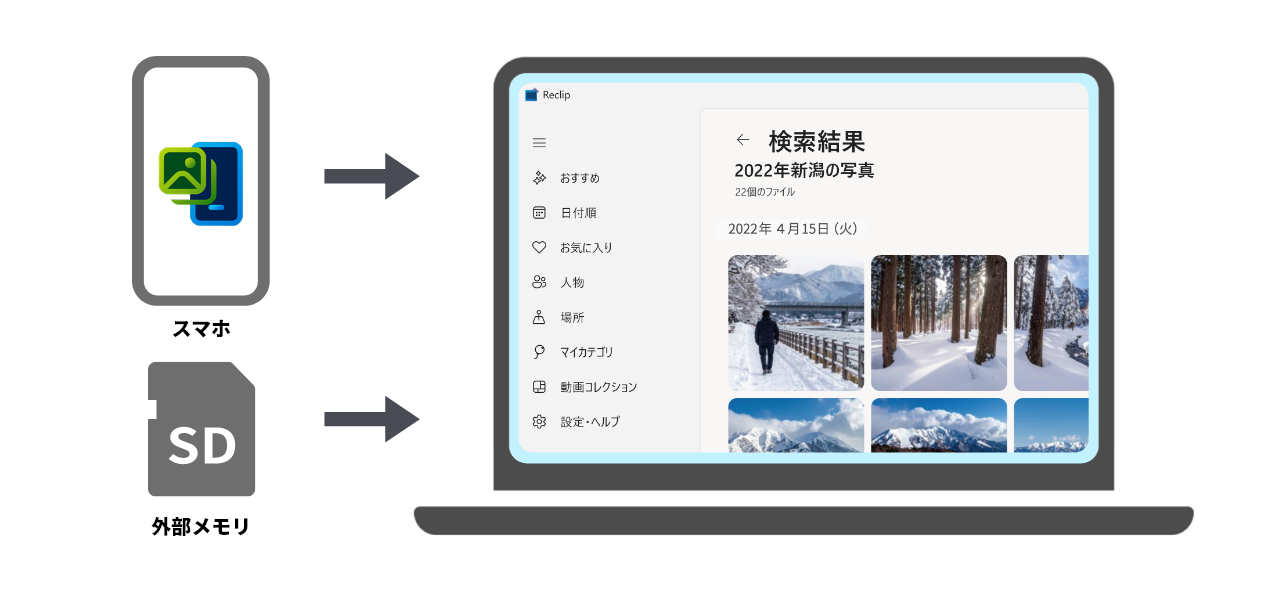 SDカードから取り込んだ古い思い出も、全てAIが自動で解析。おすすめ、