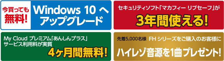 今ご購入いただいても、Windows 10へ無料でアップグレードできます。富士通なら、アップグレード手順もしっかりサポートします。