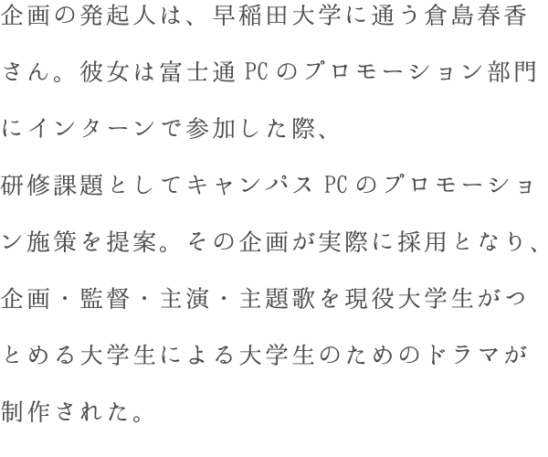 企画・監督・主演・主題歌を現役大学生がつとめる