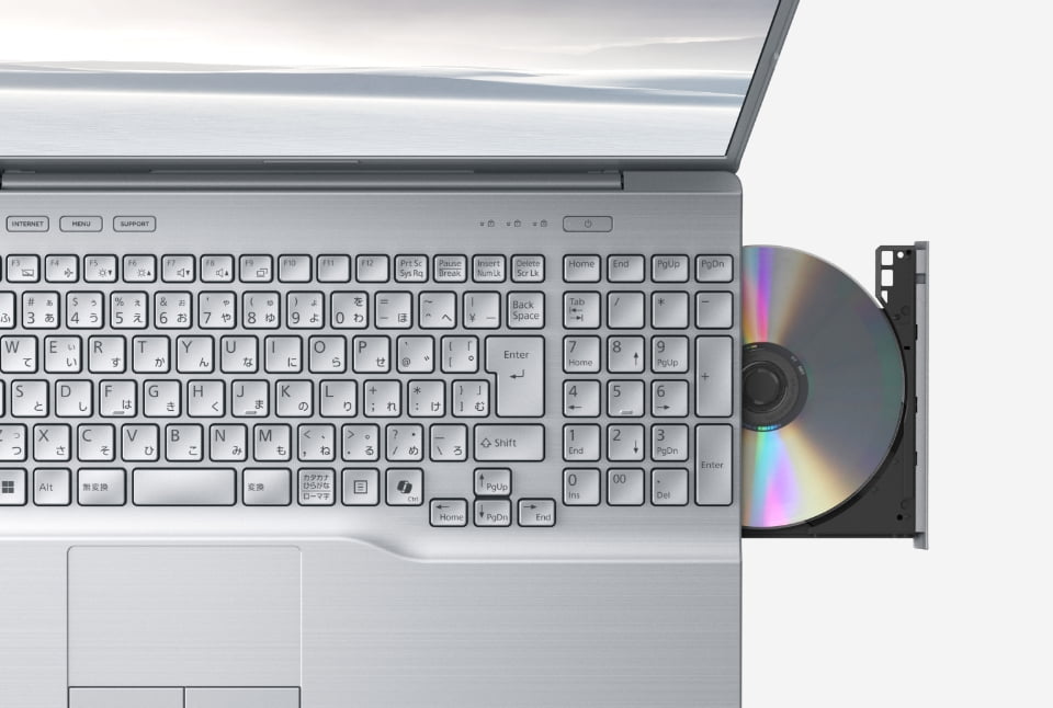Note AはコンパクトでありながらもDVDドライブを搭載。外付けドライブを別途用意する必要がありません。音楽鑑賞や映像視聴はもちろん、データのバックアップなど様々な場面で役立ちます。