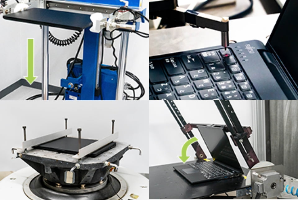 持ち運びが安心机や手から滑り落としてしまうなど日常生活で起こりうる様々なケースを想定。 ディスプレイの開閉試験や、キーボードのたわみ試験など、 長く使えるよう耐久性テスト(※1)を実施しています。
