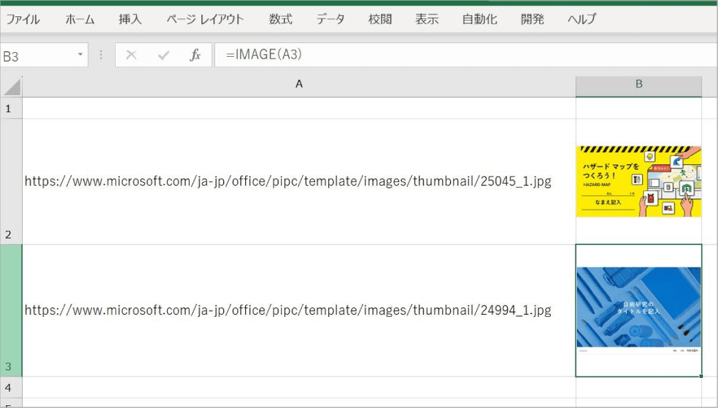 これまで以上にかんたんにIMAGE 関数を使って、指定したURLから画像情報を取得し、セルの中へかんたんに画像を追加できるようになりました。配置やサイズ調整も自動で行ってくれるので、調整の手間が省けます。